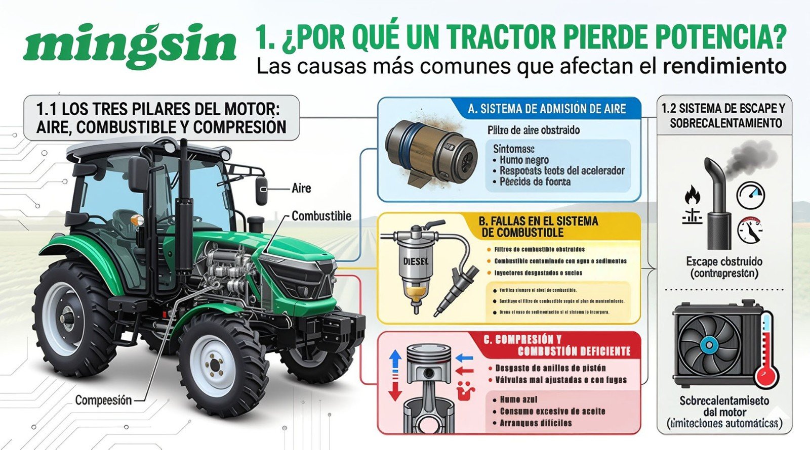 El tractor es el verdadero caballo de batalla de la agricultura moderna. Cuando funciona correctamente, la productividad fluye; pero cuando pierde potencia, incluso las tareas más simples se convierten en un desafío. Ya sea un tractor Mingsin u otra marca de uso intensivo, una caída de rendimiento nunca debe ignorarse.