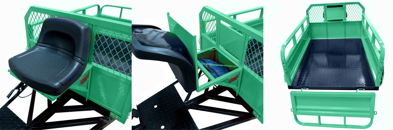 El remolque Mingsin 7C-0.55 incluye un espacio de almacenamiento adicional, ubicado debajo del asiento.