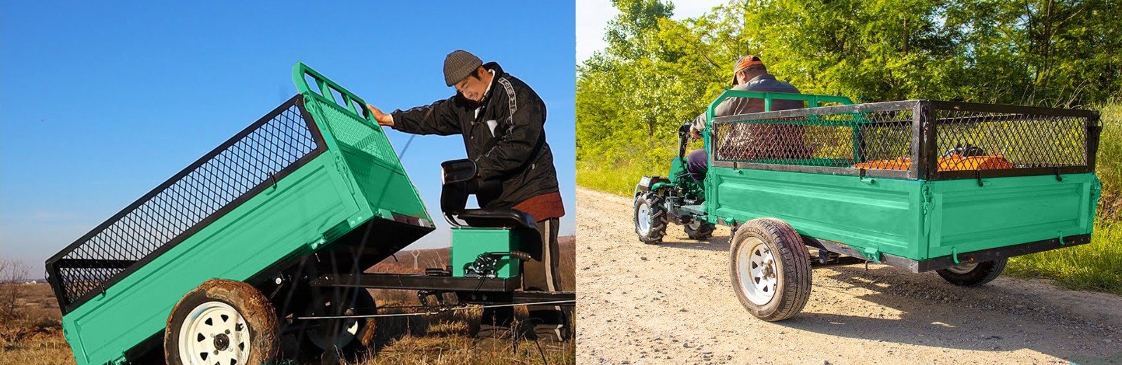 Remorca Mingsin 7C-0.75 este ușor de utilizat datorită descărcării prin basculare și reprezintă un mijloc de transport ideal pentru cei care lucrează pământul la o distanță mai mare de casă.